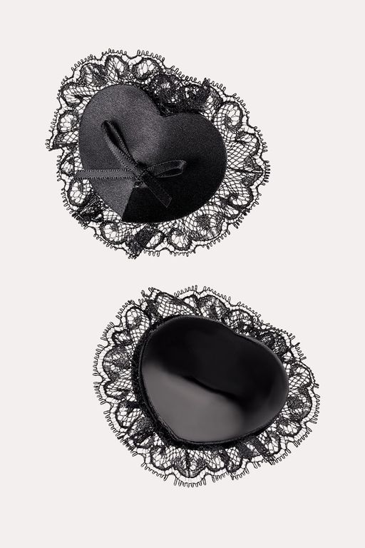 Наклейки на соски многоразовые. Однотонные. Конус выполнен из полиуретана, внутри — слой силиконового геля. Декор: сатин, кружево, сатиновые бантики.